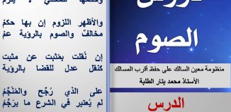 الصوم “الدرس 2” – منظومة معين السالك على حفظ أقرب المسالك / محمد بتار الطلبة